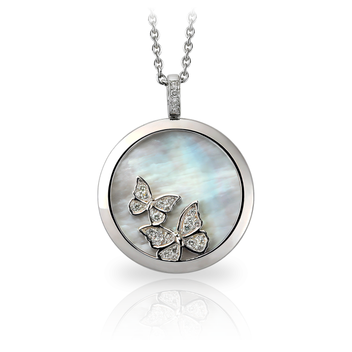Baile de Mariposas Kolye ile zamansız güzelliği keşfedin. 18K Beyaz Altından üretilen bu zarif parça, ortalama 12,74 gram ağırlığındaki Sedef ve ışıltılı elmasların narin birleşimini sergiliyor. Mücevher koleksiyonunuza büyüleyici bir katkı.